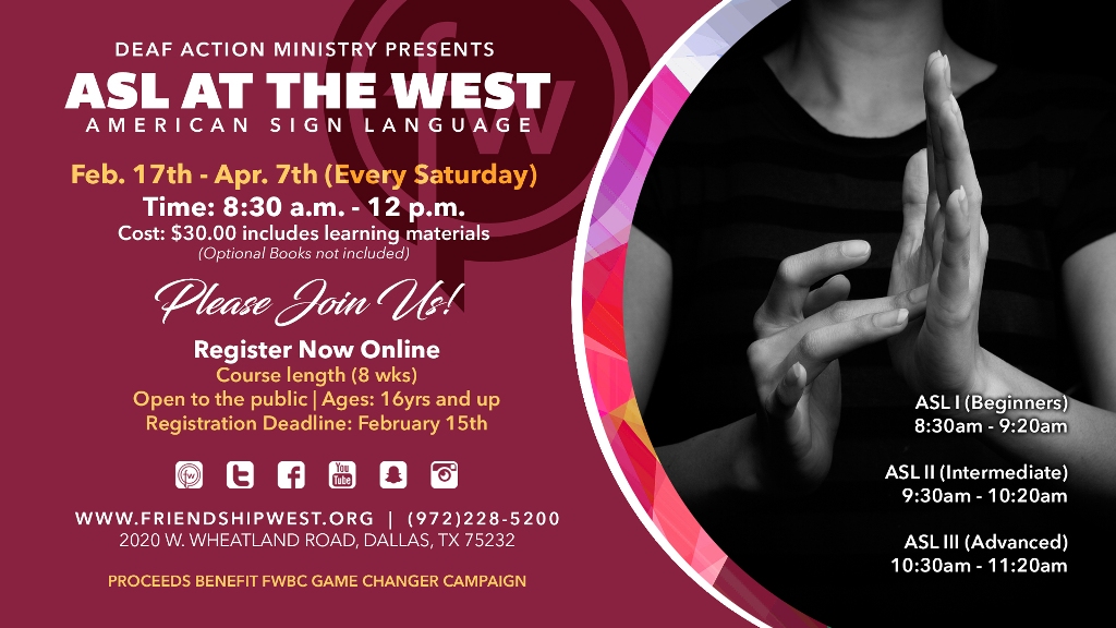 ASL Advanced Class 10:30 am – 11:20 am $ 30.00